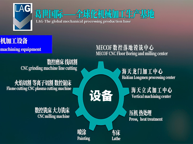 山東嘉意機(jī)械有限公司配置有國內(nèi)外前列的機(jī)械加工母機(jī),其中意大利MECOF 360° 旋轉(zhuǎn)頭、5軸聯(lián)動落地鏜銑加工中 心3臺;配置360°側(cè)銑頭5軸龍門加工中 心6臺;立式加工中 心10余臺;配套的數(shù)控車床、銑床、磨床、線切割、大力銑床、火焰切割、等離子切割機(jī)、大型壓力機(jī)、正火爐等國際前列加工母機(jī)70余臺套。生產(chǎn)國際前列水準(zhǔn)的數(shù)控折彎機(jī)、剪板機(jī)、數(shù)控沖床等鈑金加工設(shè)備,打造葛世國際技術(shù)品牌。
